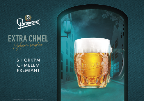 Níže popisujeme koncepční pravidlo pro rozmístění prvků v klíčovém on trade vizuálu pro extenzi Staropramen EXTRA CHMEL, jehož základními prvky jsou oblouk, noční pražská ulice a sklenice s pivem doplněné o slogan a logotyp.